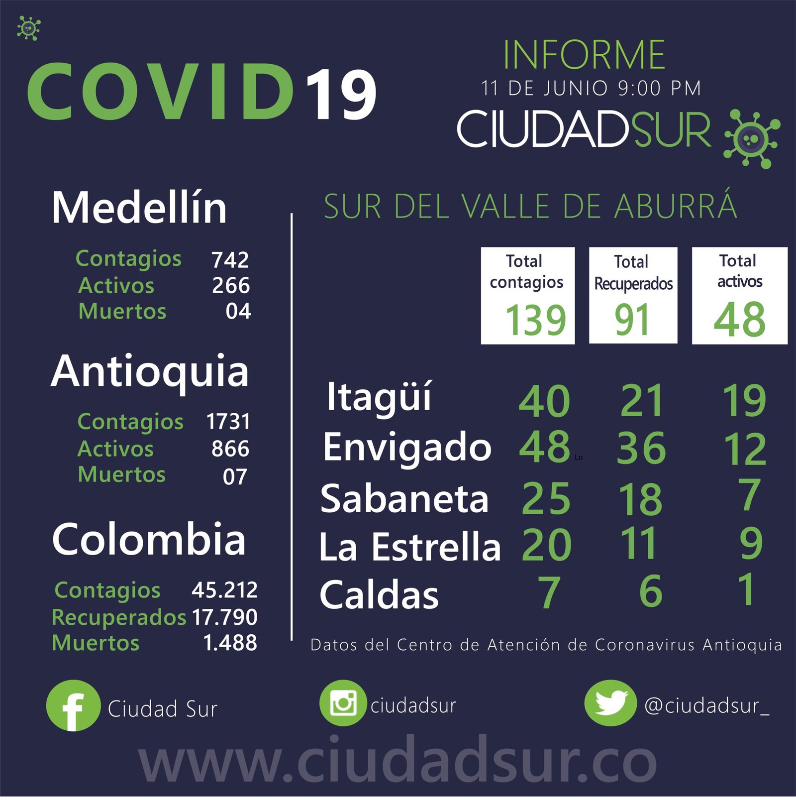Al 4 de junio ya se sumaban seis casos y al 7 de junio ya eran diez. Pero un días después, el 8 de junio se confirmaron cinco casos más de coronavirus e Itagüí llegaba a 15 activos. Este jueves se confirmaron otros tres casos, con los que el municipio llega a 19 casos activos del virus.