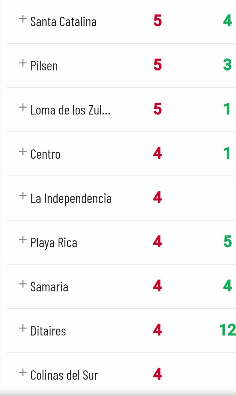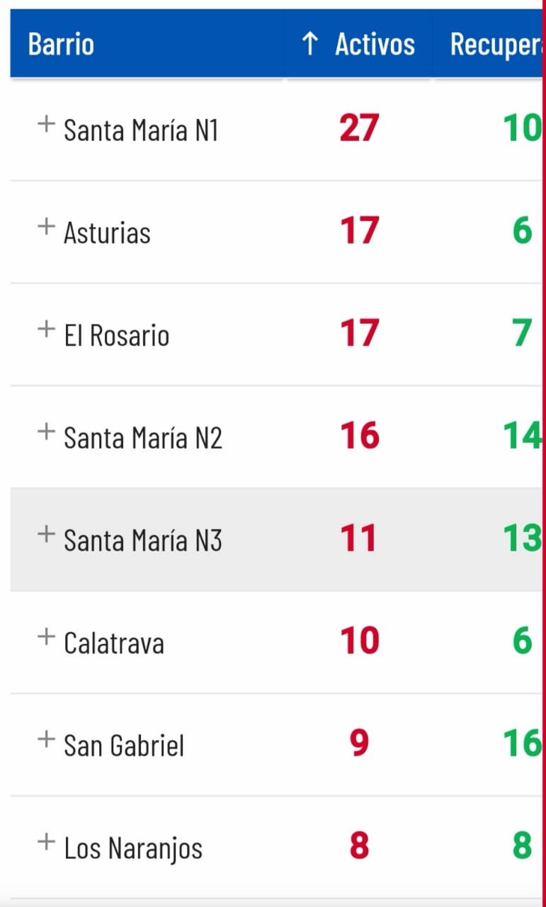 En cuanto a los barrios, este es el panorama, según la página www.coronavirusitagui.com, de los casos activos (rojo) y recuperados (verde):