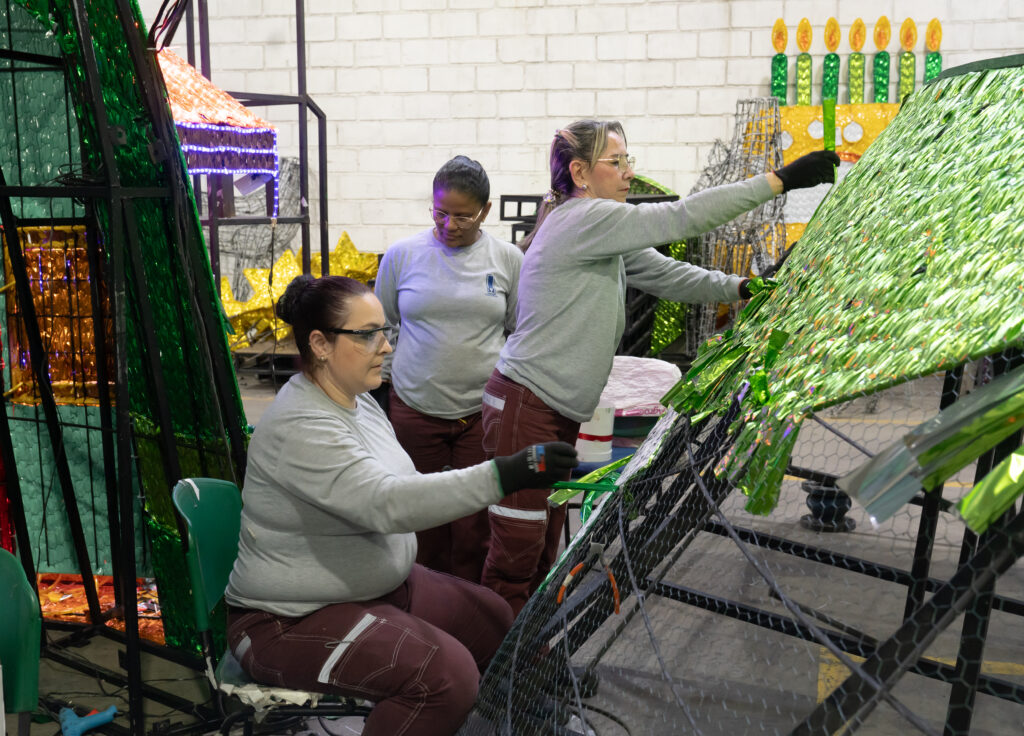 Ella recuerda con precisión la primera noche en que tocó un alumbrado por dentro. “Yo no tenía ni idea de cómo hacían los alumbrados navideños”, dice, como si aún le sorprendiera esa inocencia de la primera vez. Era el 2005 y ella empezó este trabajo por recomendación de una amiga. El primer día le dieron un caballo de metal de estructura desnuda; lo empapeló, lo enmangueró y lo vio tomar forma. “Yo no podía creer que mis manos hubieran construido algo tan bonito”, comenta orgullosa. Ese día entendió que había entrado en un oficio donde una figura de papel podría darle alegría a su vida y a una ciudad.
